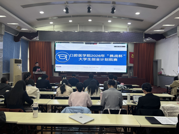3月14日下午,学院在健行楼报告厅举办2026年“挑战杯”大学生创业计划竞赛院级选拔赛。校创新创业学院院长王平,学院党委副书记胡鹏,创业指导老师许飞以及张平辉老师应邀出席并担任评委。