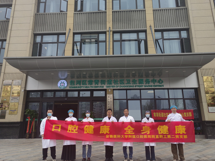 3月31日上午,院直教工第二党支部组织党员医师团队,联合合肥市包河区常青街道社区卫生服务中心,在包河区常青街道社区卫生服务中心门口举办口腔健康义诊活动。