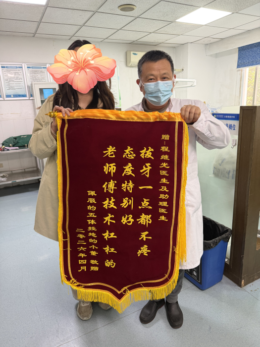 锦旗上“拔牙一点都不疼,态度特别好,老师傅技术杠杠的”的质朴评价,是患者对医护团队诊疗水平与服务态度的高度肯定。