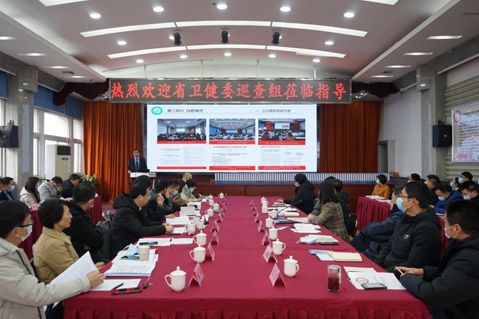 何家才结合实际,从医院概况、自查情况、存在的问题和不足三方面向与会人员作了全面汇报,重点报告了公立医院党建、行业作风建设、运行管理情况、规范诊疗行为、改善医疗服务、公立医院绩效考核、信息化建设、公立医院高质量发展等方面的工作开展情况。