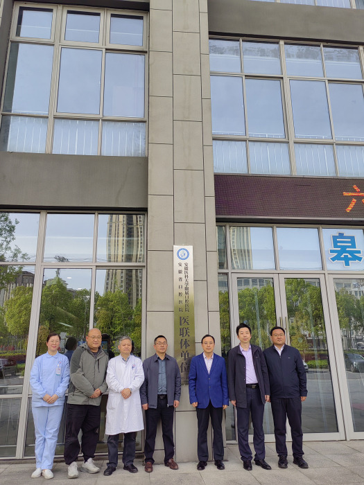 随后,调研组实地走访皖西卫生职业学院附属口腔医院(六安市口腔医院)。双方就深化医联体合作、强化实践教学、拓展学生就业渠道等方面进行深入交流。院长涂有运介绍医院发展历程及2026年度人才需求计划,希望以医联体建设为契机,通过专家派驻、技术帮扶、资源共享等形式,全面提升诊疗水平与管理能力,更好服务基层群众。座谈结束后,刘颀与涂有运共同为“医联体合作单位”揭牌。