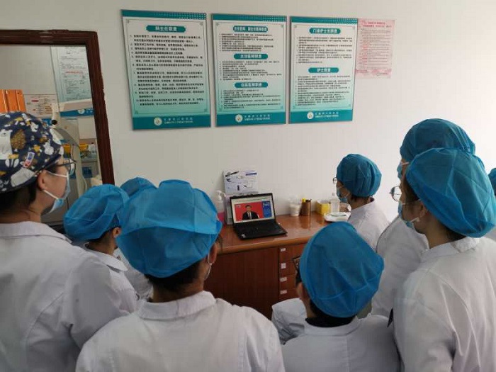 今天上午10时,纪念中国人民志愿军抗美援朝出国作战70周年大会在北京人民大会堂隆重举行,我院教职医护员工通过手机、电脑、大屏幕等多种方式收看了直播。
