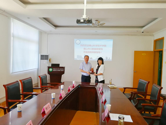 傅江景对学校以及附属口腔医院的热情接待表示感谢,并分享了佛山科学技术学院以及佛山科学技术学院附属口腔医院(佛山市口腔医院)近年来在医疗、教学和科研方面所取得的进展以及正在筹建的新口腔医院建设思路,希望通过此次来访,能够在新口腔医院建设方面学习借鉴有益的经验,进一步推动双方在医院建设、管理和发展等方面的深入合作。