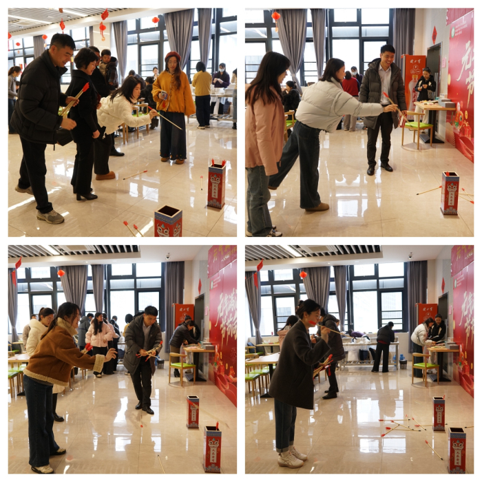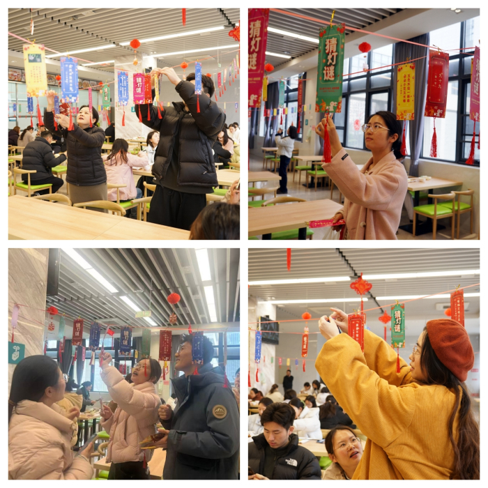 本次活动内容丰富多彩,集趣味性、互动性与体验感于一体。现场设置了“灯谜大闯关”、“元宵投壶迎好礼”以及“巧手做汤圆·暖心共品尝”等多个环节。在“灯谜大闯关”区域,大家或凝神思考,或相互探讨,现场气氛热烈;在投壶游戏中,参与者全神贯注,体验传统游戏的乐趣;而在包汤圆环节,大家齐动手,揉面、拌馅、搓圆,共同制作出象征团圆美满的汤圆,现场欢声笑语不断,暖意融融。