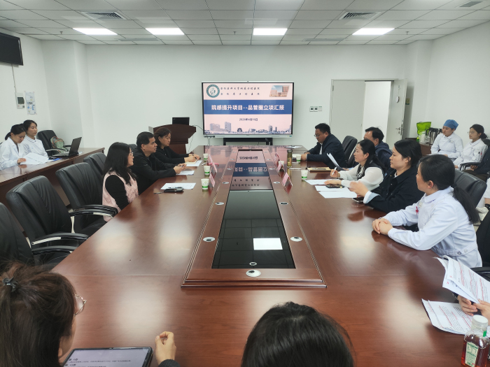 4月16日上午,医院举办2026年院感提升项目品管圈立项汇报会,会议邀请校第二附属医院院感办主任吴德全担任评审专家,我院院长王元银,正处级调研员谢宜鹏出席活动。