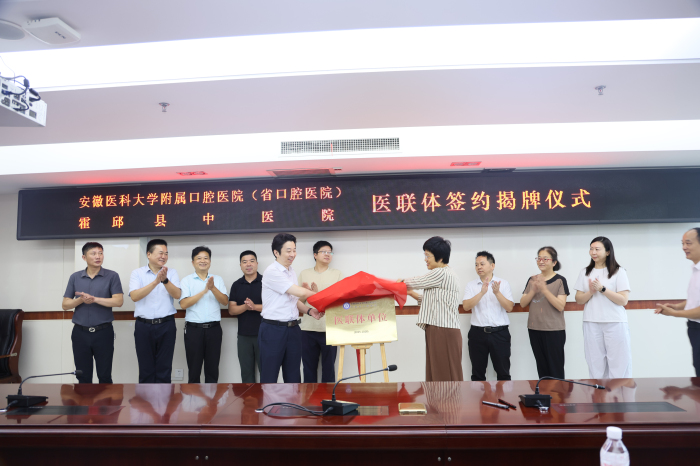 刘洁心在讲话中对医联体的签约揭牌表示祝贺。她表示,口腔健康是全民健康的重要组成部分,医联体合作是落实国家分级诊疗政策、推动优质医疗资源扩容下沉的具体实践,对提升霍邱县医疗卫生服务整体水平、改善民生福祉具有重要意义。她希望霍邱县中医院珍惜合作机会,主动对接、积极学习,充分借助安徽医科大学附属口腔医院的优质资源,不断强化自身建设;同时也期待安徽医科大学附属口腔医院能持续发挥优势,为霍邱县培养更多口腔医疗专业人才,共同为当地群众打造更加便捷、高效、优质的口腔健康服务环境。